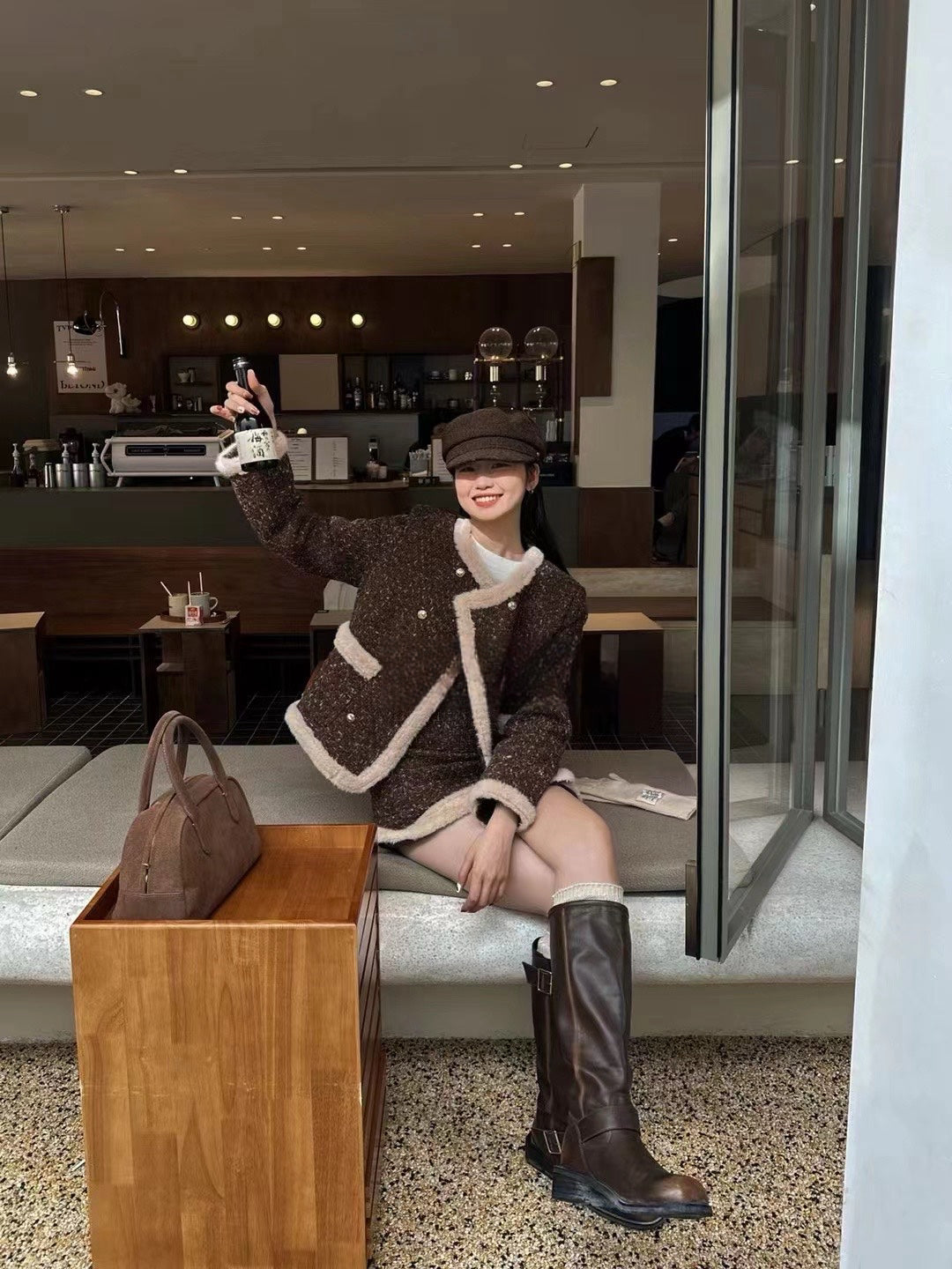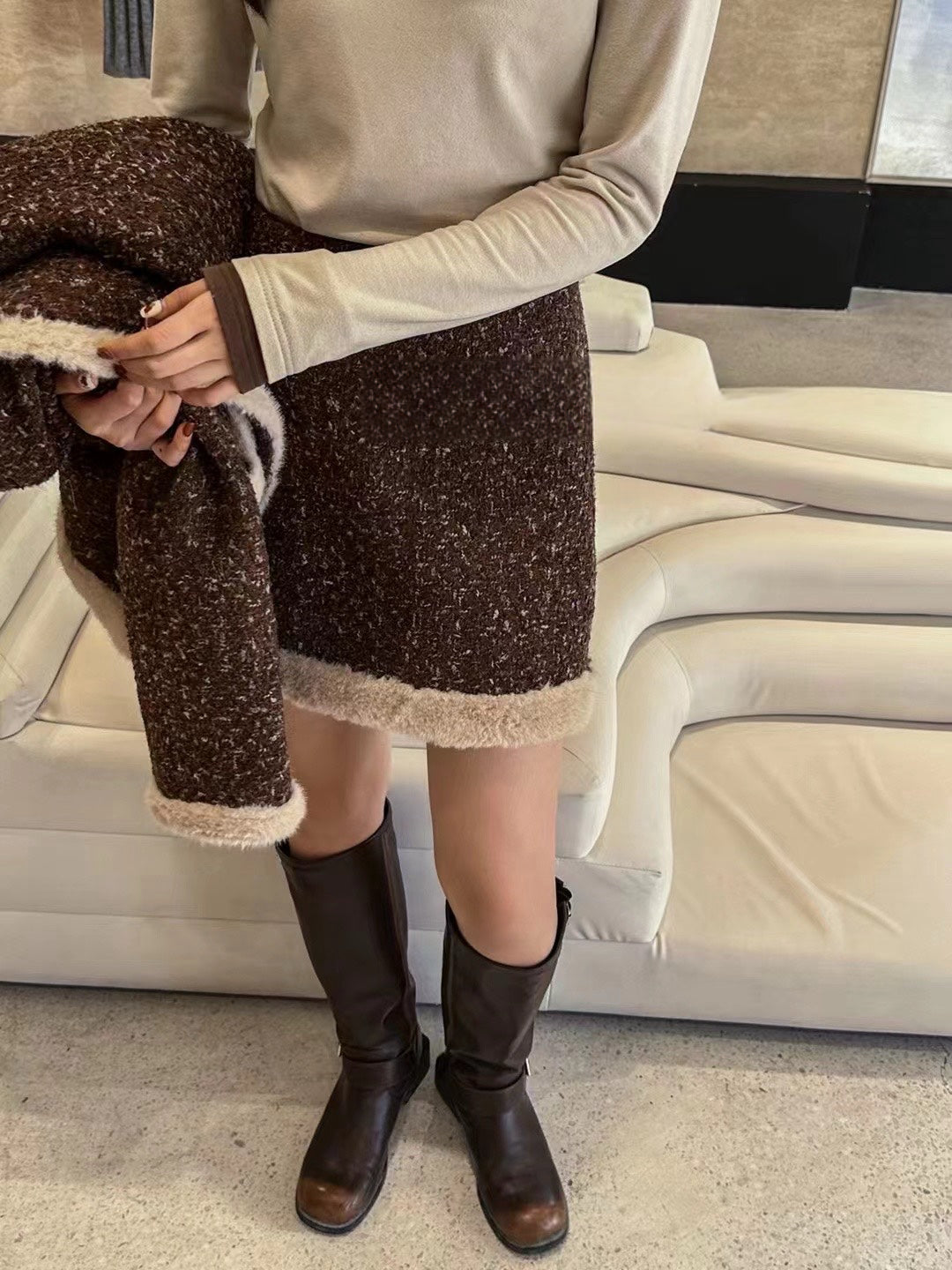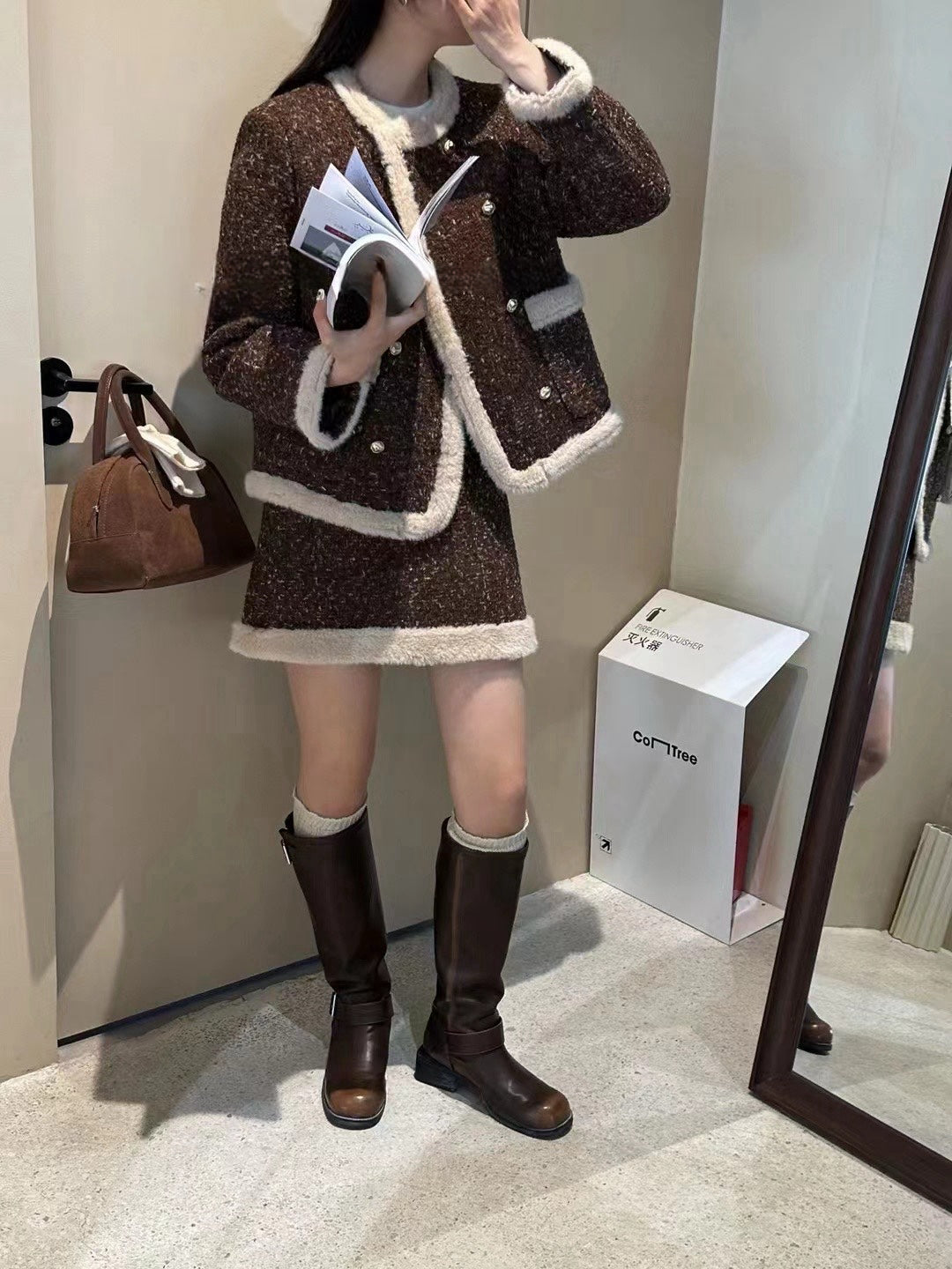 This Fuzzy grid-stitched suit is an essential for the winter season, highly recommended for its excellent warmth and versatile style. Crafted with high-quality wool on the outer layer, it offers exceptional warmth and durability. The inner layer features soft rabbit fur, ensuring comfort and added warmth. Delicately designed with mink fur around the collar, it not only adds a touch of luxury but also enhances the overall insulation. Whether for daily wear or special occasions, this suit exhibits its unique charm, allowing you to stay fashionable and warm in the chilly winter days.