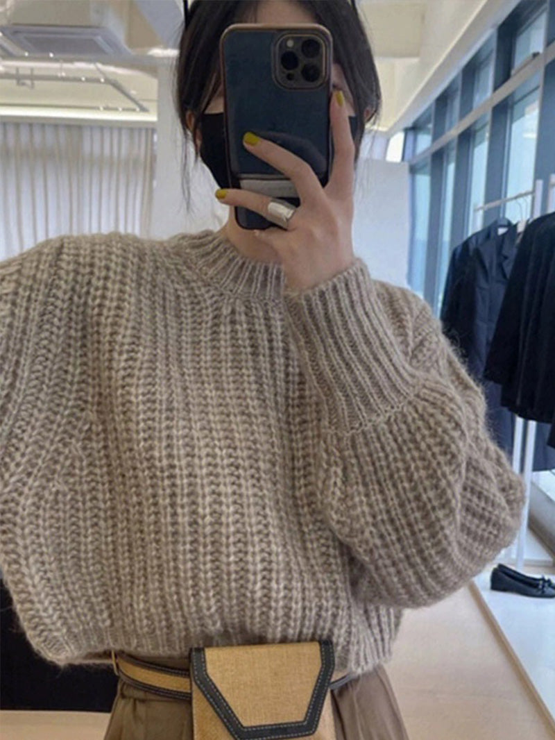 Versatil solid color round neck long sleeve slouchy sweater Sale