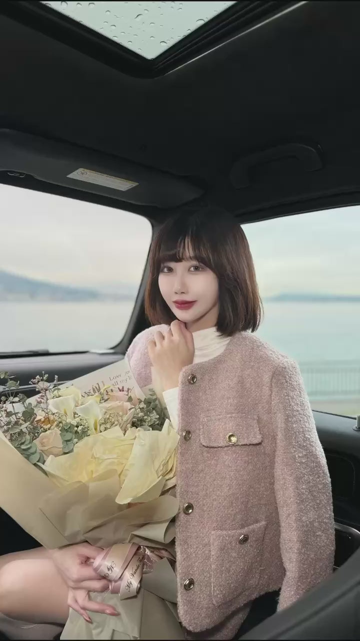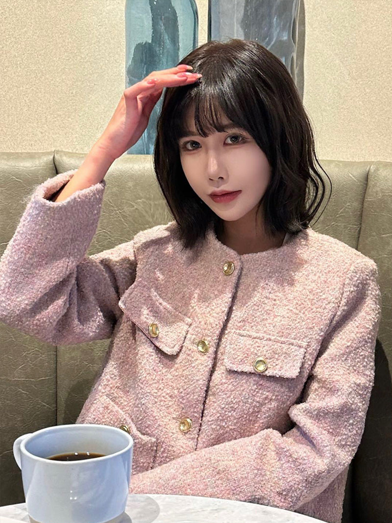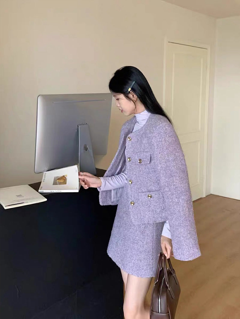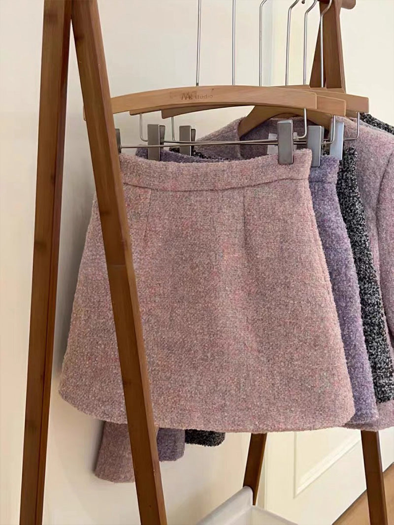 Immerse yourself in the charming elegance of French style with confidence as we introduce the Little Fragrance French-style short round-neck woolen suit set. This is an enchanting and extremely fashionable combination. The two-piece includes an exquisitely designed woolen coat and a matching half skirt, creating a unique and advanced French style for you.